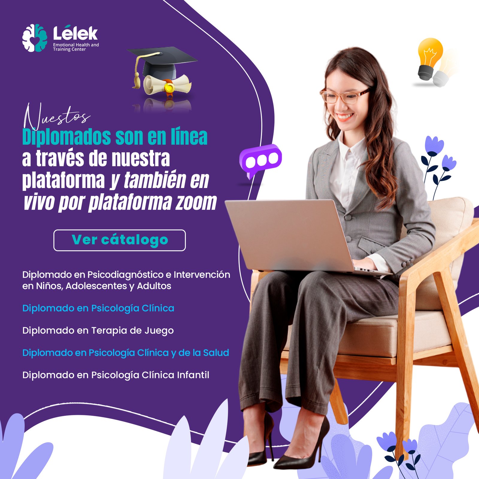 En Lélek ofrecemos diplomados en modalidad 100% en línea y en vivo por Zoom, diseñados para fortalecer tus habilidades clínicas y terapéuticas. Cada programa combina teoría actualizada con estrategias prácticas aplicables en el ejercicio profesional.